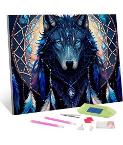 Obraz Diamentowy 5D Niebieski Wilk Indyjski Haft Diamentowy 30x40 cm DIY